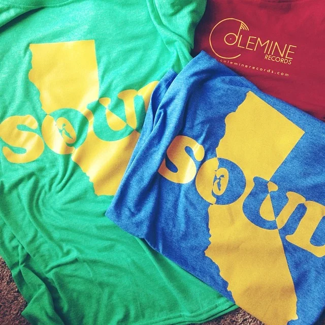 WHAT WE'VE GOT ARE DOWNLOADS FROM iTUNES, 7" VINYL 45's FROM COLEMINE RECORDS AND THESE SUPERTIGHT BAY AREA SOUL SHIRTS DESIGNED BY BURNSY AND TERRY COLE.